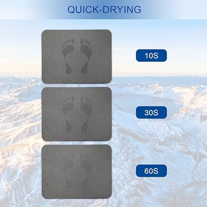 - 【HIGHLY ABSORBENT】:Made from 100% Diatomaceous earth,is an all-natural substance; It can absorb water quickly and dries in minutes, keeps your floor dry and clean.