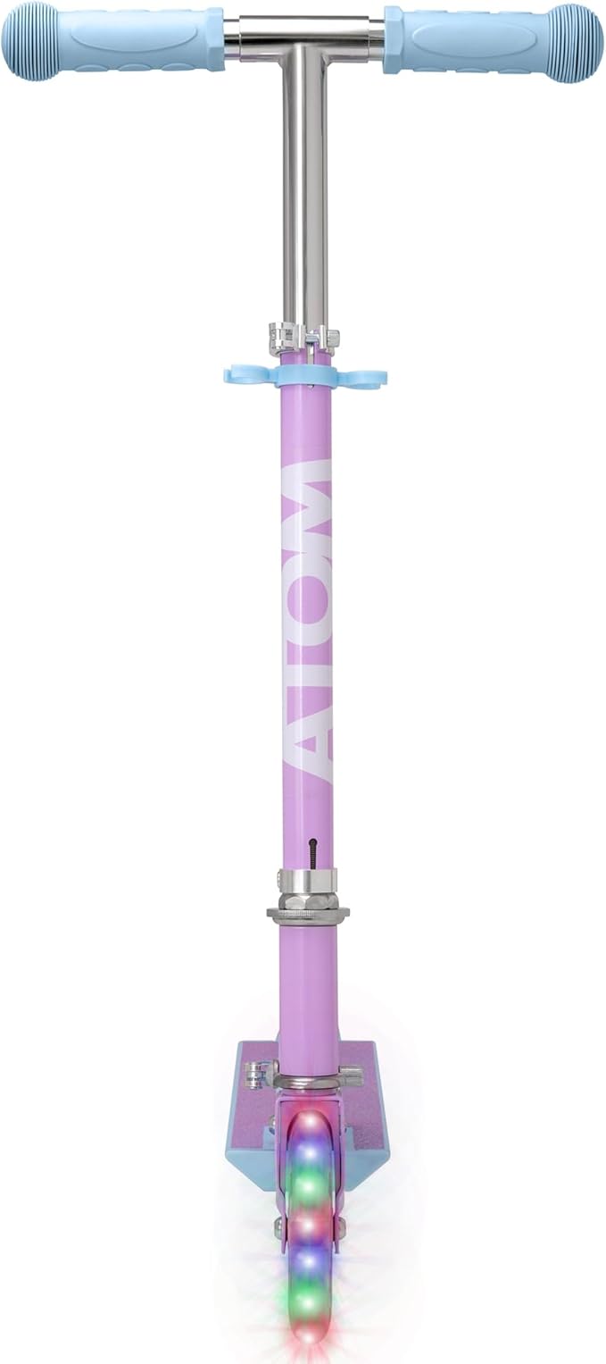 - 🎁 The Ideal Gift for Scooter-Loving Kids Looking for the best gift for a 4–7-year-old? The ATOM Light-Up Scooter in lilac and baby blue makes the perfect birthday present, Christmas surprise, or reward for active kids. It's a fantastic alternative to bikes, ride-ons, balance scooters, and roller skates – and one of the top ways to encourage screen-free outdoor play. Its colourful design and glowing wheels make it a hit with fans of unicorns, LOL Surprise, Bluey, and anything that sparkles and shines!