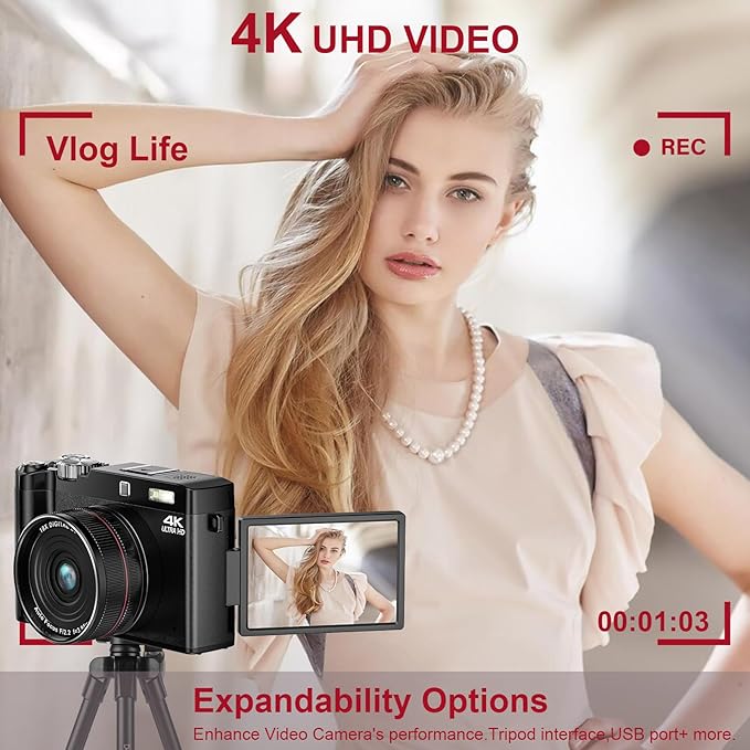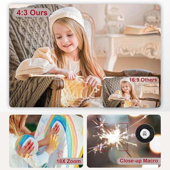 - 【Versatile for Multiple Scenarios, Ideal for Teens, Beginners, and Families】This digital camera combines HD shooting, long battery life, creative functions, and versatility, making it perfect for teens, beginners, and families. Whether capturing scenic landscapes, family gatherings, or vlogging, it offers an easy-to-use interface and smooth image quality. Teens and beginners can easily learn basic photography skills, while even seniors and kids can enjoy the fun of shooting photos and videos with its simple operation, making it an ideal choice for capturing everyday moments.