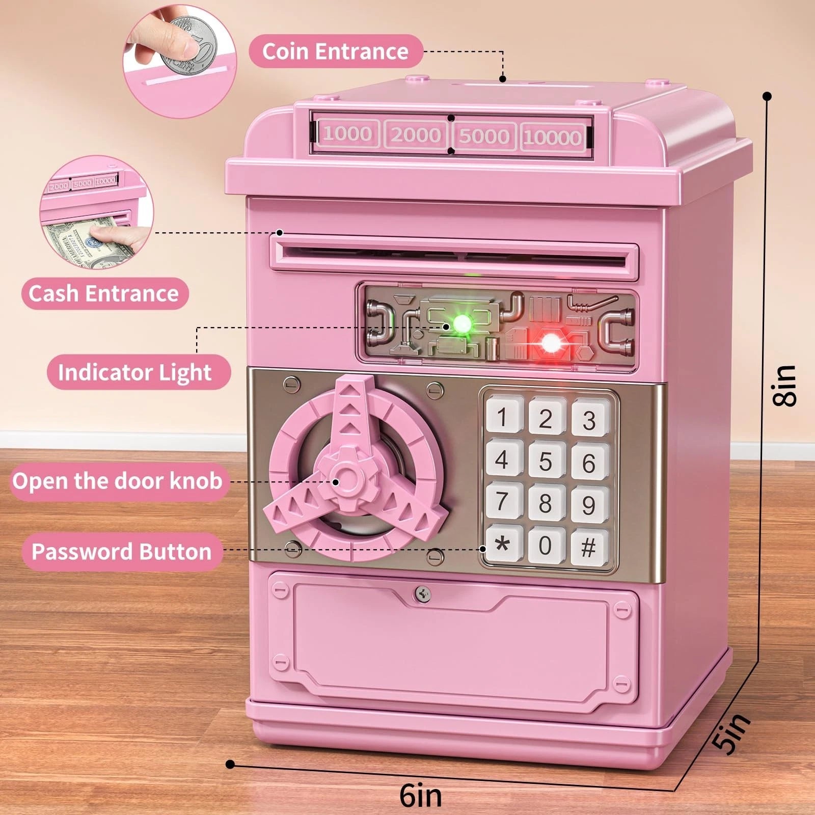 Pink TEMI Electronic Piggy Bank for Kids - Mini ATM Money Safe & Password Box
