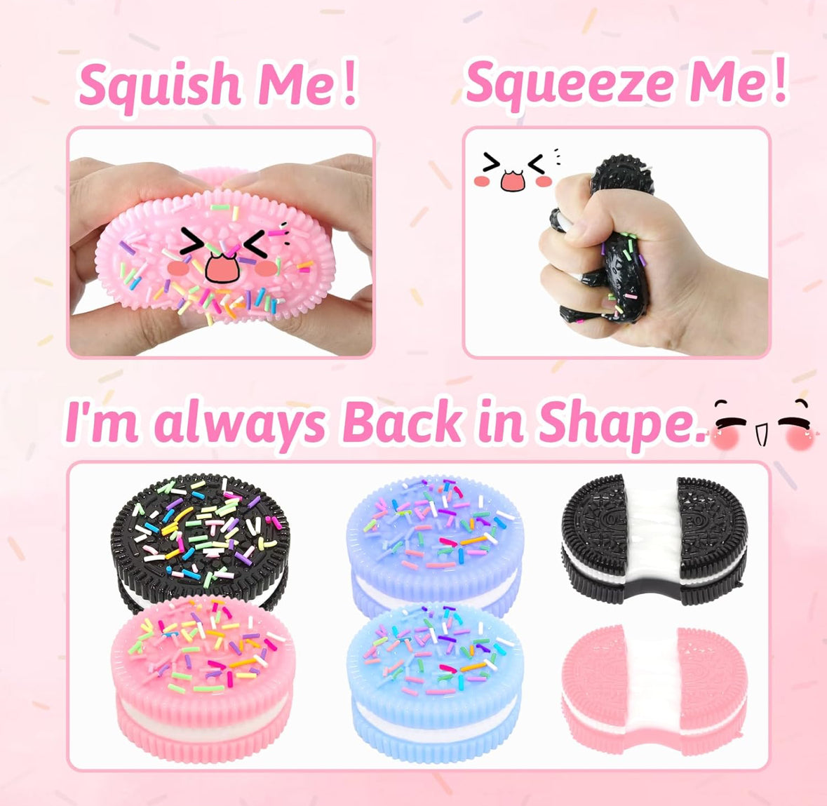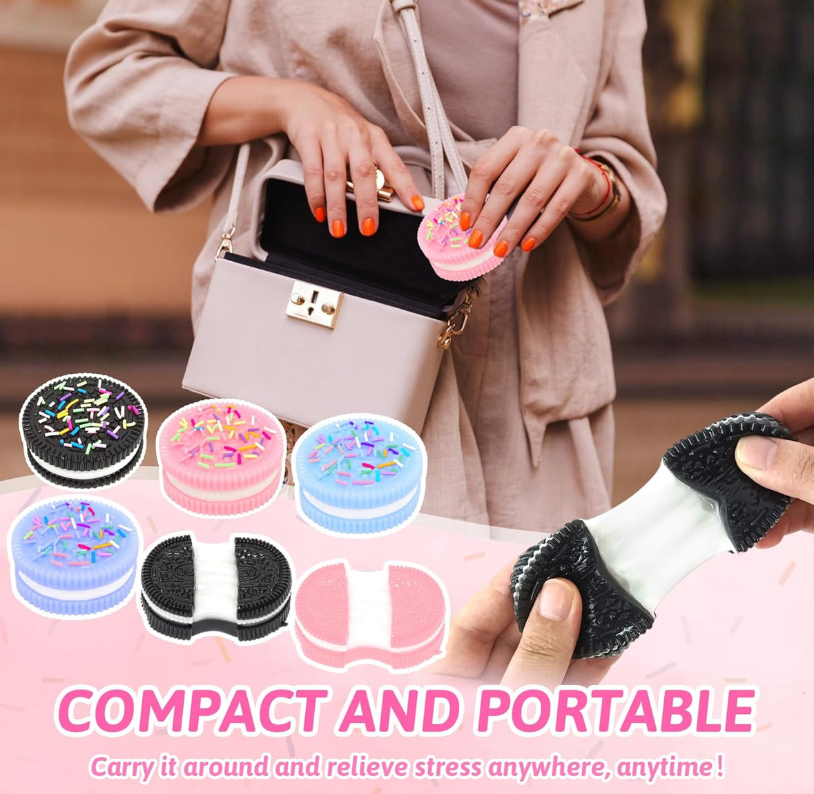 - 🍩🍩🍩Attractive & Well-designed Product: This toy is visually appealing and thoughtfully crafted, resembling sandwich biscuits in shape and colour. The toy's unique design encourages users to engage with it physically, releasing emotions and stress through the act of squeezing. This provides users with dual sensory enjoyment.