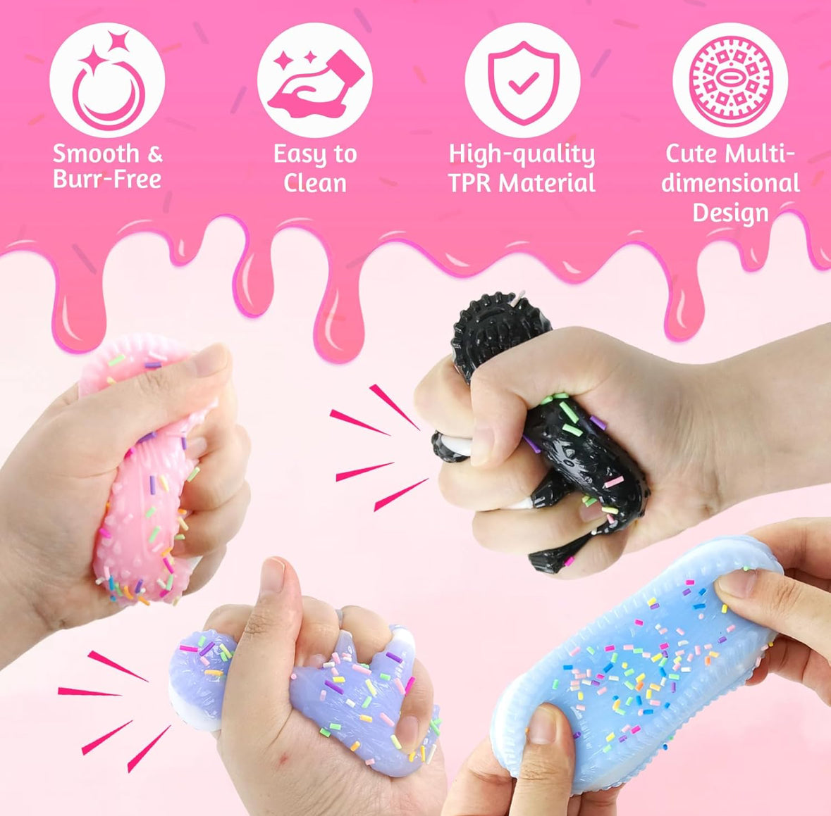 - 🍩🍩🍩Comfortable & Soft Material: Decompression toys are made of TPR soft material, delicate feel, can provide a comfortable touch when squeezing, suitable for long time play, to ensure the comfort and durability of the squeeze, is the ideal choice for relaxation.