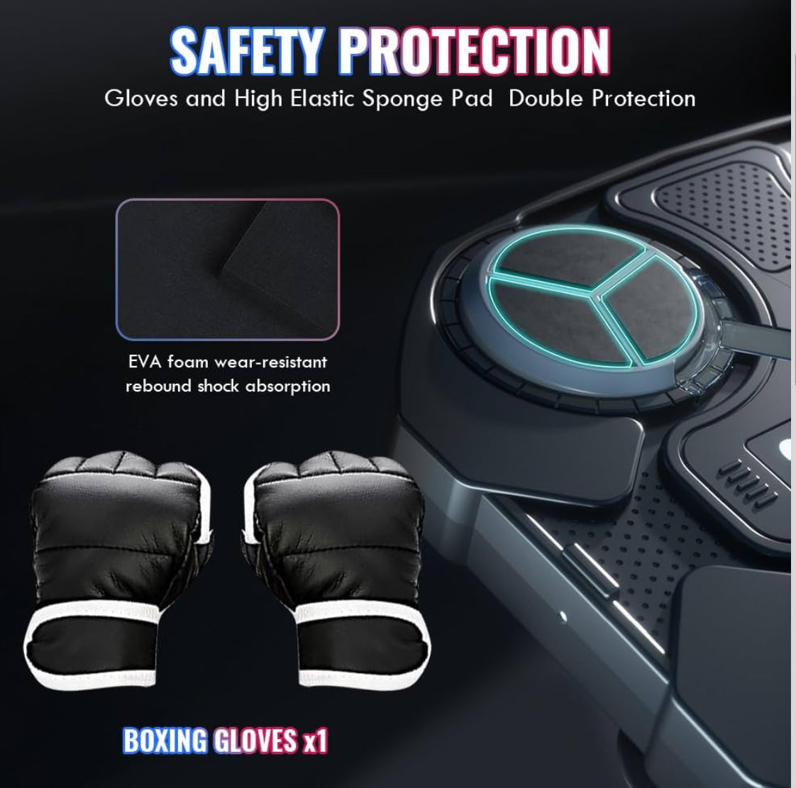 - š„ćComplete Boxing EquipmentćIncludes boxing gloves and all necessary equipment, making it a comprehensive boxing machine setup. No need for additional purchases or accessories.