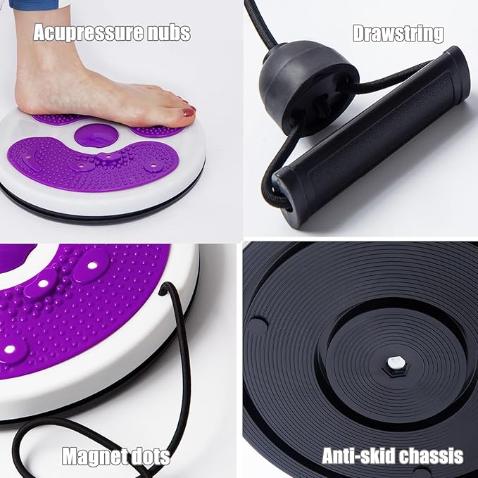 - 【Fitness Twist Waist Board 】The newly upgraded drawstring model. Twist your body to target excess fat in the stomach, hips, and thighs, while also providing a soothing foot massage.The magnetic wave disc will massage and stimulate meridian points on the bottom of the feet and help promote good health.
